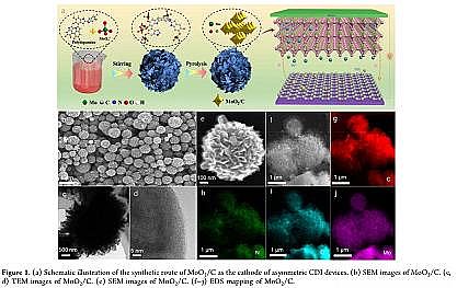 首次通过非对称CDI方法研究了铅离子在氧化还原活性MoO2/C阴极电极上的SCR效率,在高浓度Pb(NO3)2混合溶液中对铅离子的去除效率>99%。此外对各种重金属离子混合物中的铅离子也表现出较高的SCR效率,这归因于钼的八面体结构向四面体结构的转变,且[MoO6]和[MoO4]团簇晶格之间的晶界转变可以通过电化学调控。